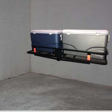 Most of us find it difficult to locate extra space in the garage. The Cargo Carrier Wall Mount system is a simple wall mount which takes advantage of cargo carrier baskets and bike racks currently out on the market that attach to the hitch of your truck or SUV. The Wall Mount mounts on the wall and allows you to store your cargo carrier baskets and bike racks on any studded wall.